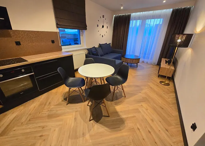 Apartament Zielone Laki lägenhet erbjuder ett komplett kök samt rum med balkong och plattskärms-TV med satellitkanaler. Muzeum Regionalne im. Hieronima Lawniczaka ligger 1 km bort och Rezerwat przyrody Mszar Bogdaniec kan nås inom 10 minuters bilfärd.
